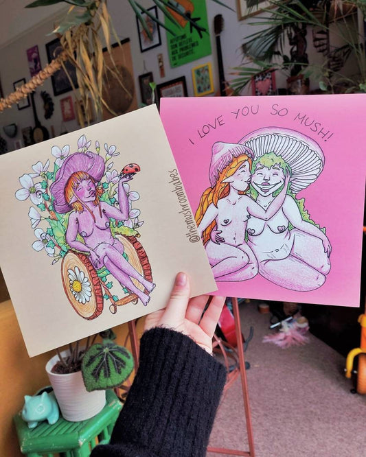 The Mushroom Babes range of body positive breastfeeding mushroom artwork, featuring Babes...